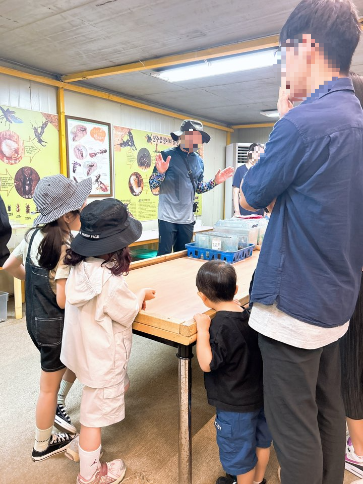 곤충관에서는 물방개, 게아재비, 사슴벌레와 애벌레, 장수풍뎅이를 직접 보고 만지고 느끼는 시간이었어요!