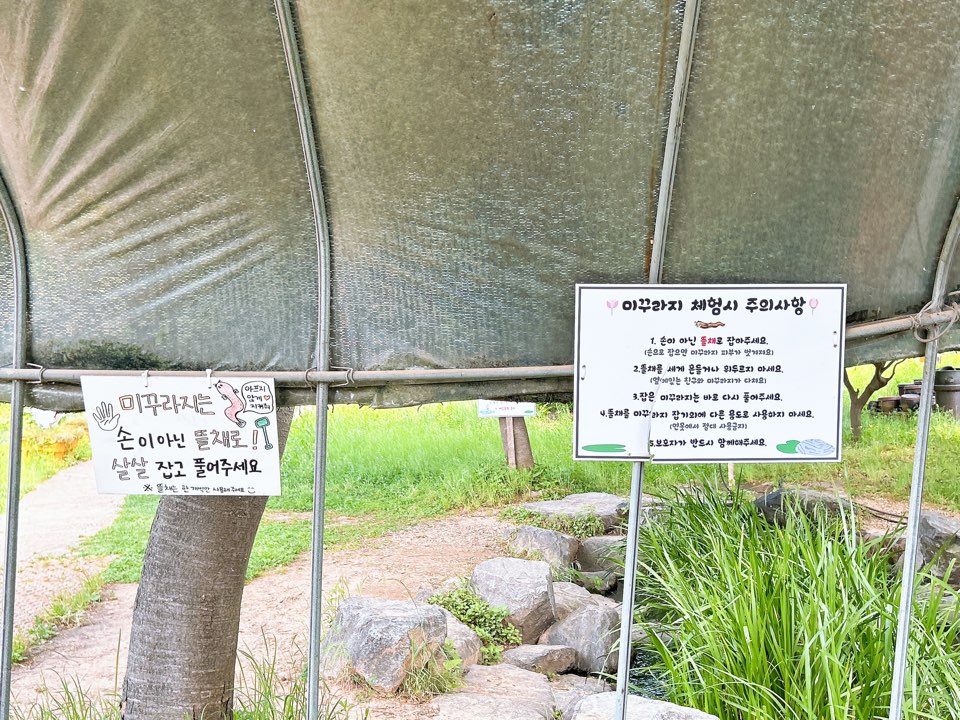 저희는 미꾸라지 잡기를 했지만 시즌별로 고구마캐기, 올챙기 담아가기 등 다르게 진행 될 수 있어서 좋은 것 같아요!