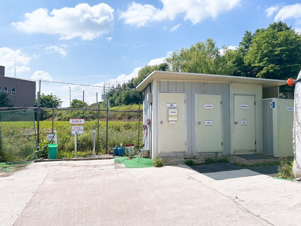 손 씻는 곳과 화장실은 이렇게 되어있어요.