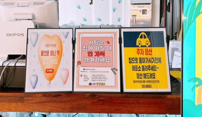 나가기 전, 사탕과 뱃지 가지고 퇴장~ 주차정산 잊지마세요!