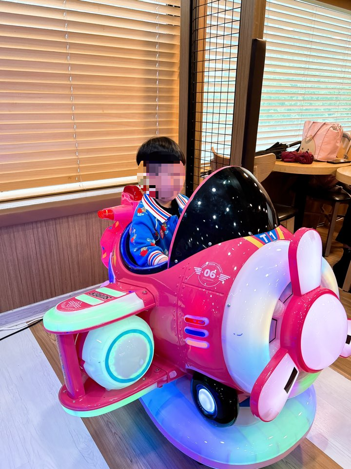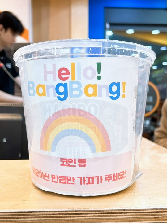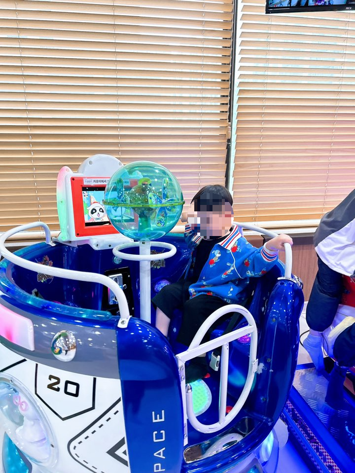 카운터에 코인통이 있는데, 이곳에서 코인을 필요한 만큼만 챙겨서 이렇게 장난감을 탈 수 있습니다!